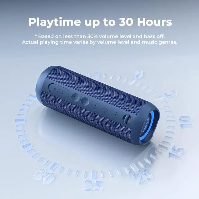 Continuous playtime up to 30 hours(varies by volume level), lasts long enough to enjoy outings.