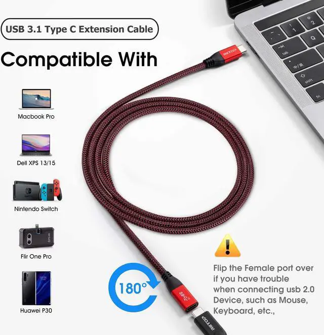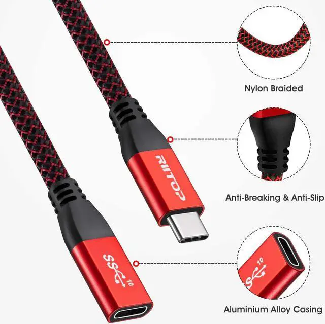 RIITOP USB-C Extension Cable (6ft) is designed for extending USB C Port on USB-C devices, such as Nintendo Switch, Type-C Smartphone or Laptop.