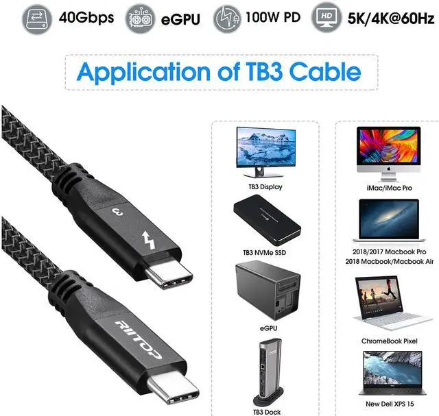 1x RIITOP Thunderbolt 3 Cable Cord 3.3 ft / 1m.