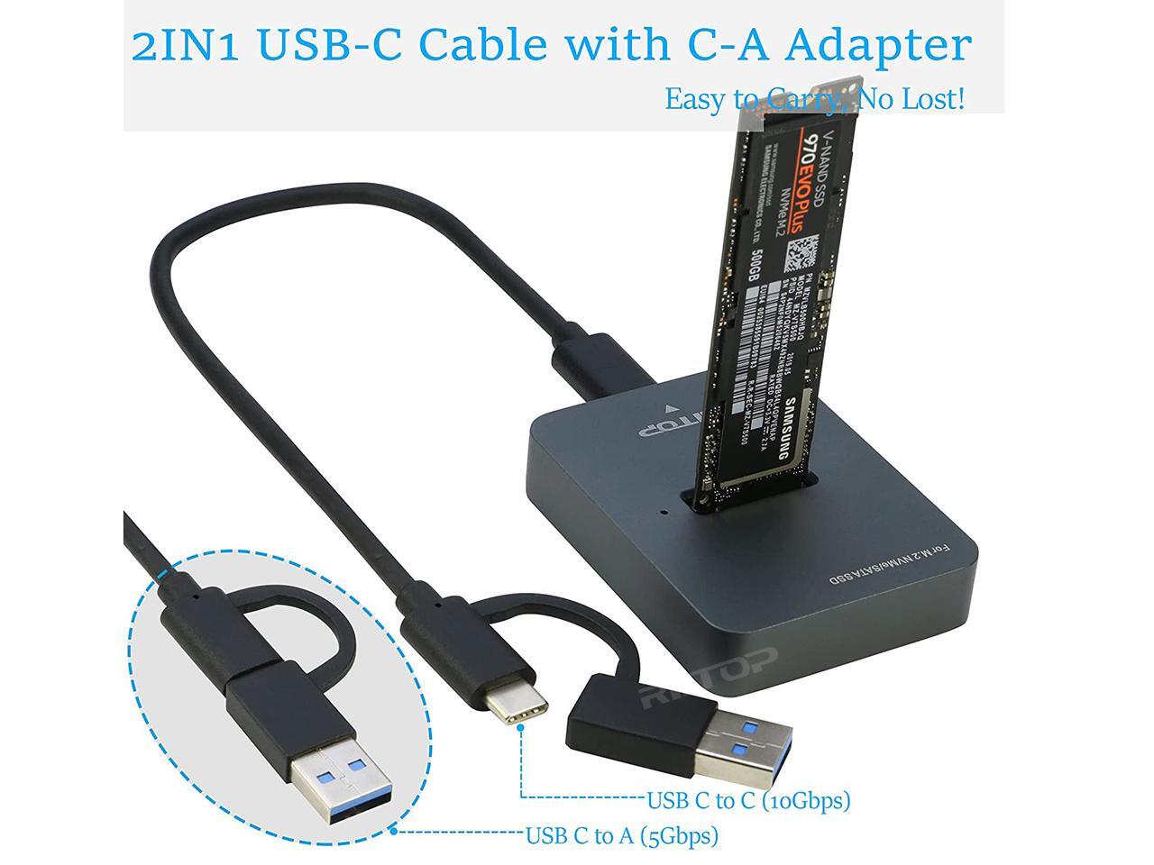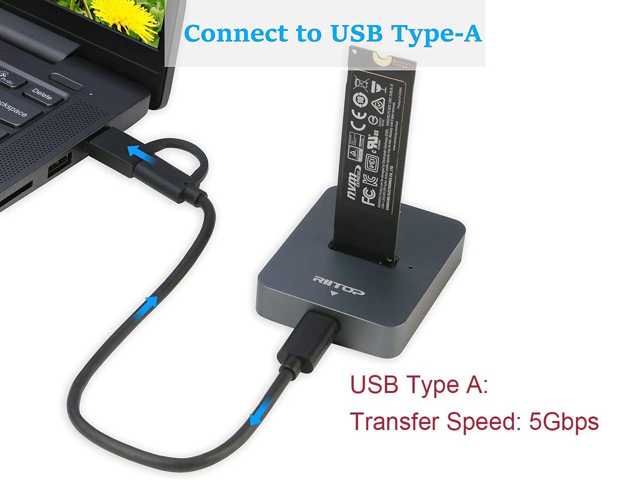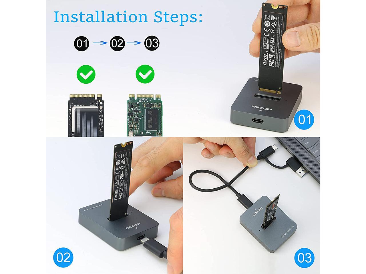 - What You Get: 1×RIITOP M.2 to USB Docking Station, 1×USB-C to C cable(with C to A Connector)