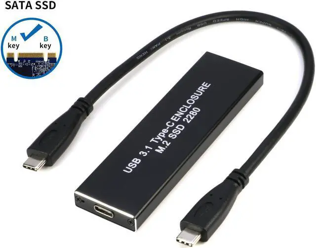 Please Note: 1. it supports SATA-based B/B+M Key SSD only. It does NOT support PCI-E based B key & any M key & Nvme SSD. 2. SSD in picture is not inlcuding. 3. The cable is USB-C to USB 3.0 A male cable, no USB-C to USB-C Cable including. B+M Key M. 2 SATA SSD to USB-C 3.1 Type C External Enclosure for m. 2 ngff 2280 B+M Key SATA Channel SSD with Cable (No SSD)