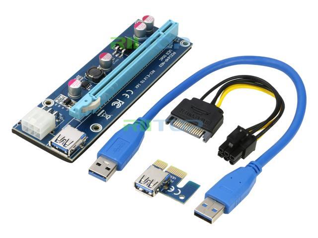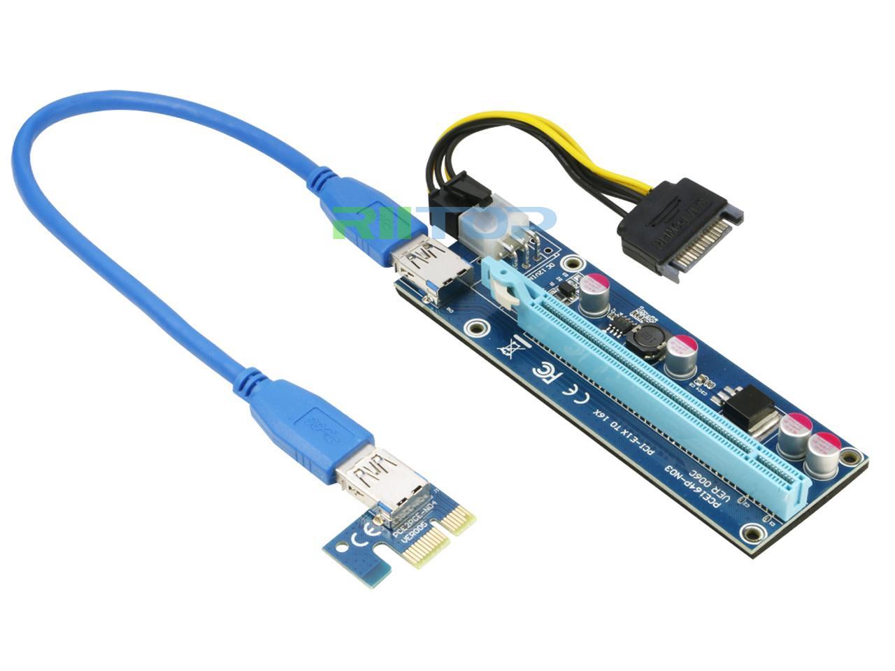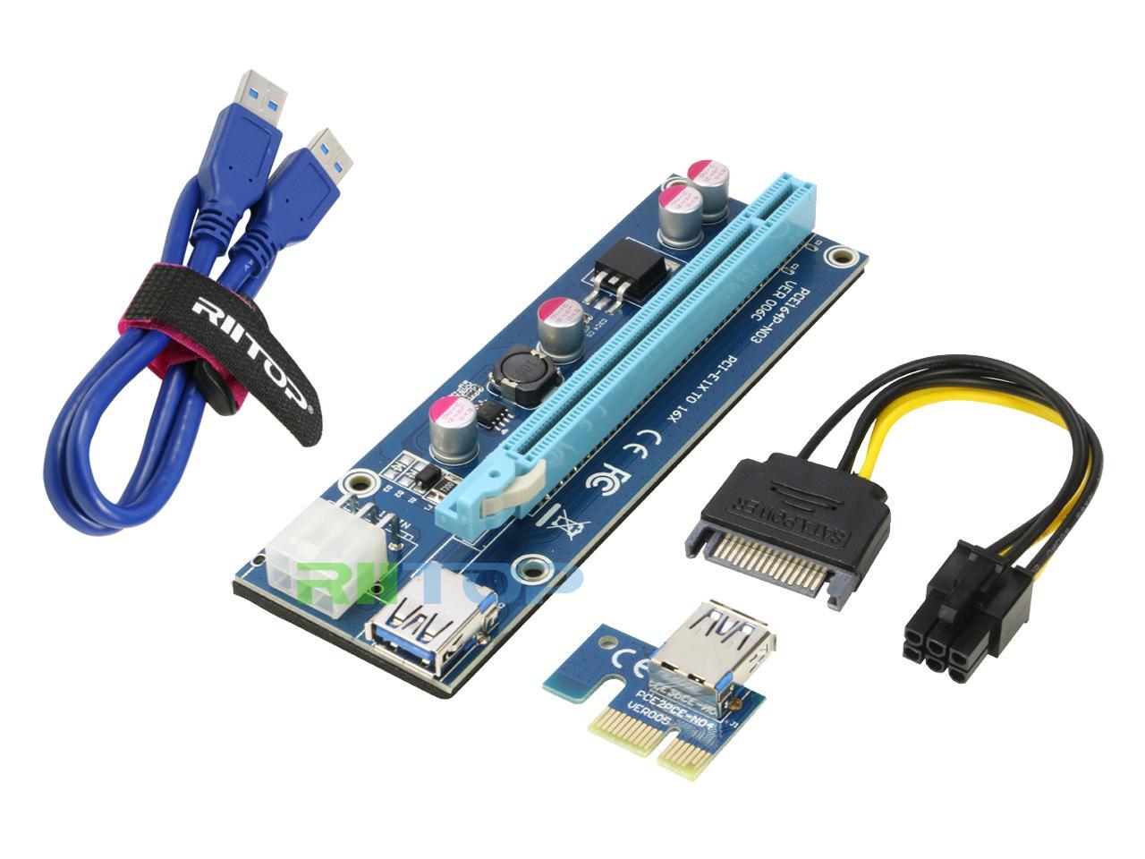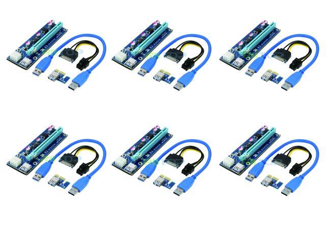 USB Bitcoin Miner, RIITOP 6Pack Mining PCI-e Express Riser Cable Card Adapter PCI Express 1x to 16x Riser Extender Monero BTC ETH BCH XRP with USB 3.0 Cable 60CM + 15Pin SATA to 6Pin Power Cable