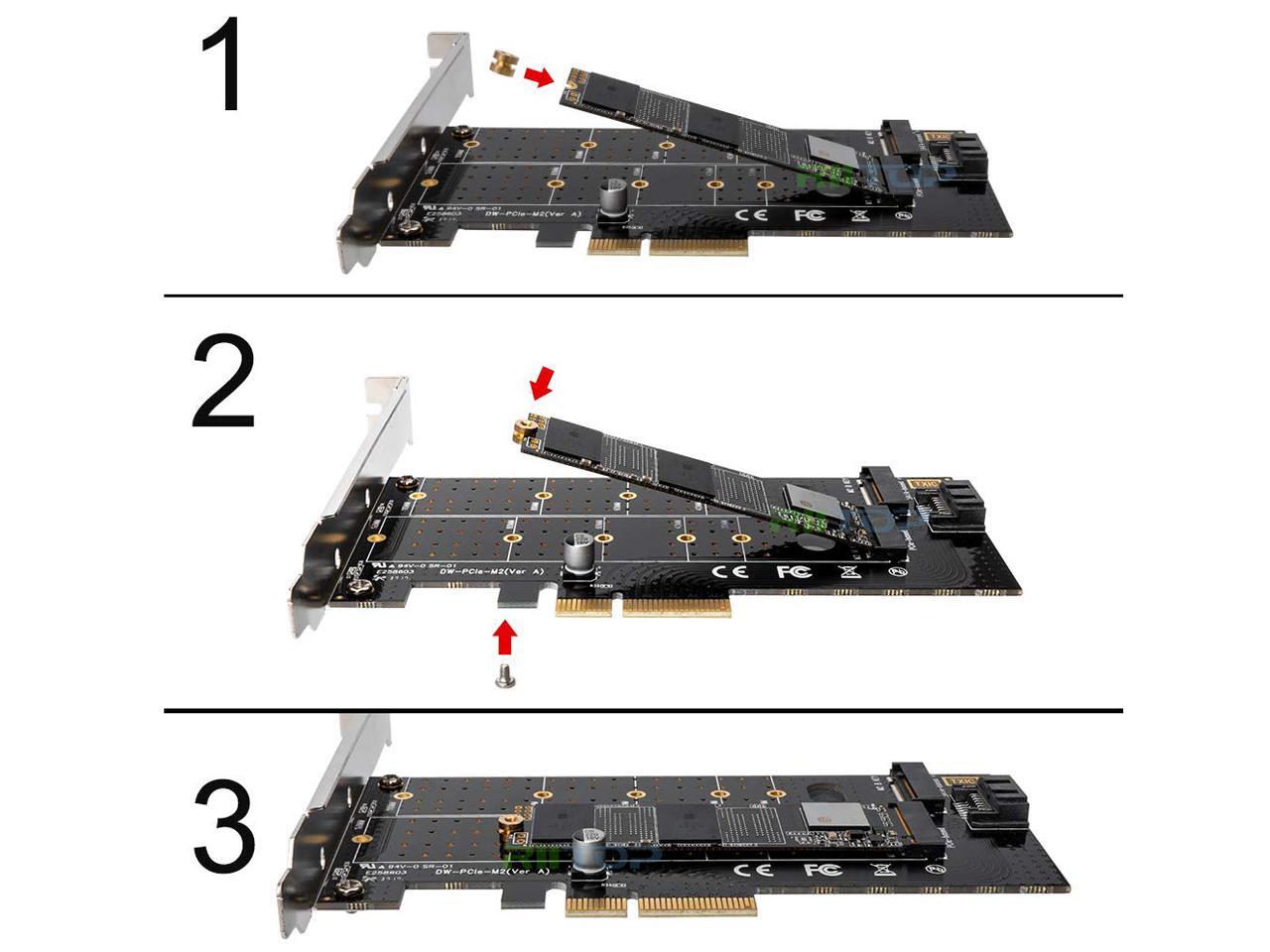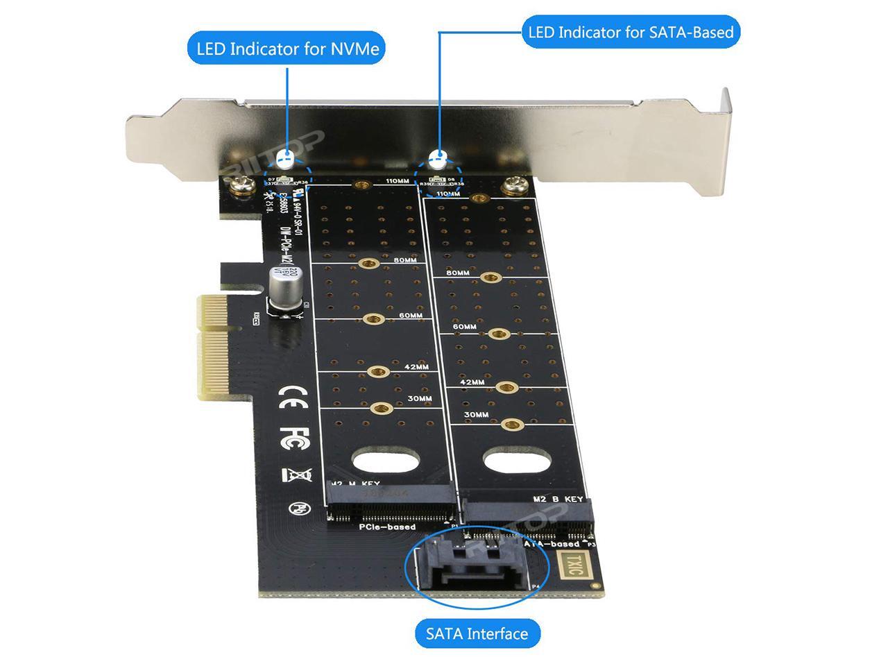 - This Dual M.2 Adapter Converts a M.2 (B key) SATA Based SSD into SATA interface, and M.2 NVMe SSD (M Key) to PCI-e 4x
