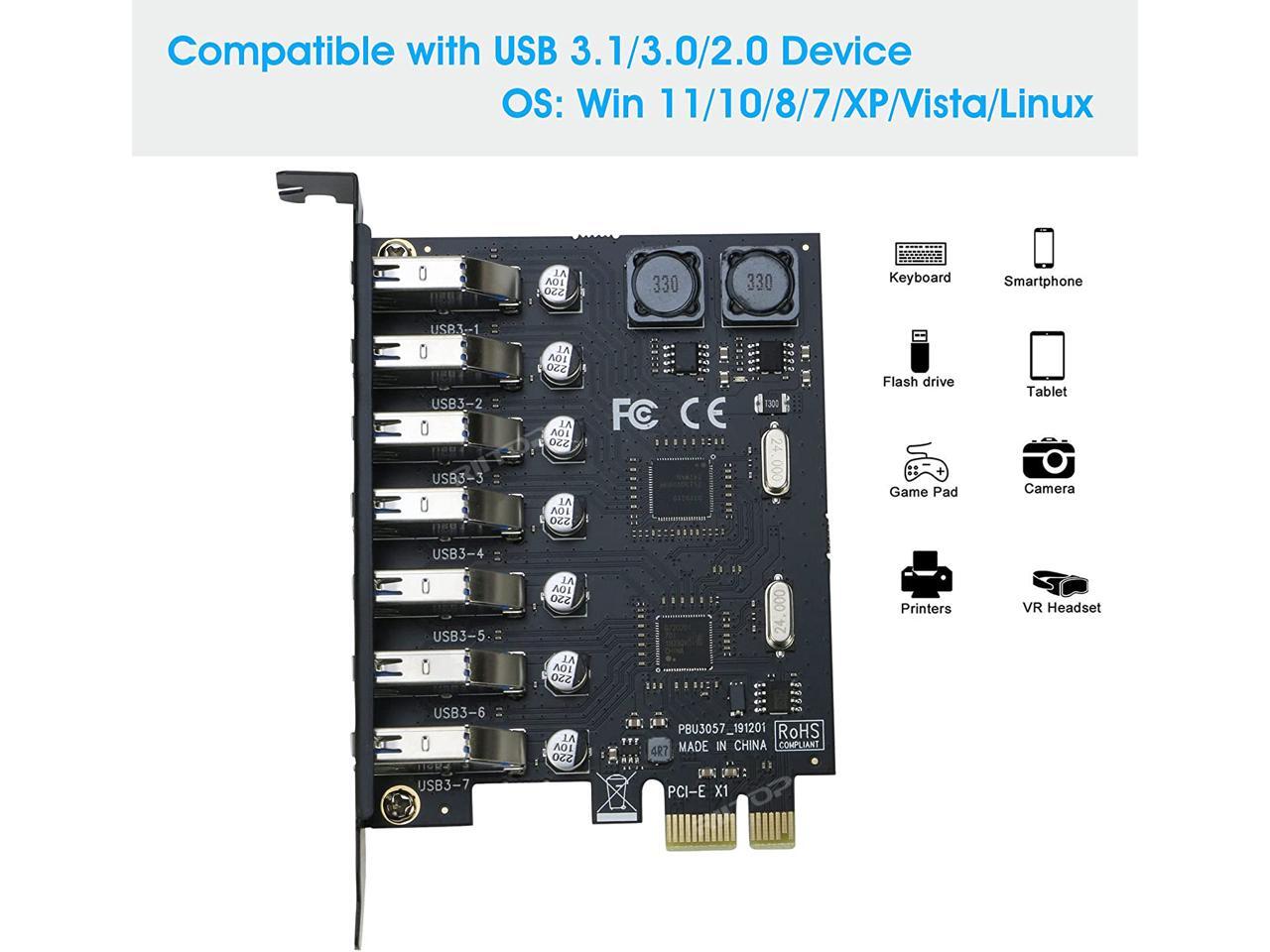 - 7 port usb 3.0 expansion card for desktop pc computer PCI-e 1x (or above) slot