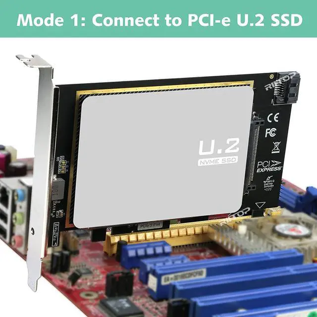 Support of dual interface protocol: U.2 SDD (direct use without connection) / SATA SDD (required to connect the SATA data cable).