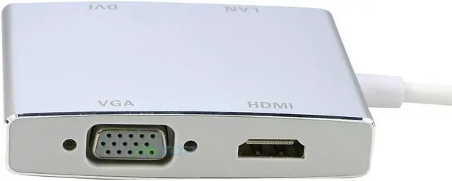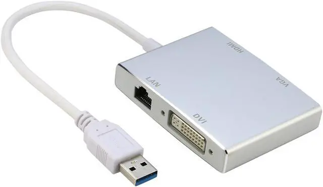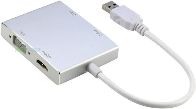 Durable and lightweight 4-in-1 adapter for converting a USB 3.0 port from your laptop or computer into a display port for any HDTV‚ monitor‚ or projector with HDMI‚ DVI‚ or VGA ports.