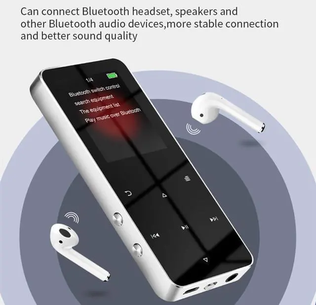 RIJAHO 64GB MP3 Player with Bluetooth 5.0 2.0 inch Screen Touch Button Portable Hi-Fi Lossless Music Player Speaker with FM Radio Recorder Alarm Clock Pedometer Wired Headphone Support Card (Black)