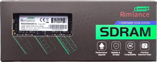 Upgrade your laptop's performance with the Rimlance 16GB (1X16GB) 1.2V DDR4 2933MHZ PC4-23400 SODIMM 2RX8 Laptop Memory. This high-speed memory module is designed to boost your system's multitasking capabilities, allowing you to run multiple applications simultaneously without experiencing lag or slowdowns. With a data transfer rate of 2933MHz and a low voltage of 1.2V, this memory module delivers exceptional speed and efficiency while minimizing power consumption. Featuring a compact SODIMM form factor, it's compatible with most modern laptops and can be easily installed to expand your system's memory capacity. Whether you're a power user, gamer, or content creator, this 16GB memory module from Rimlance ensures smooth and responsive performance for all your computing needs.