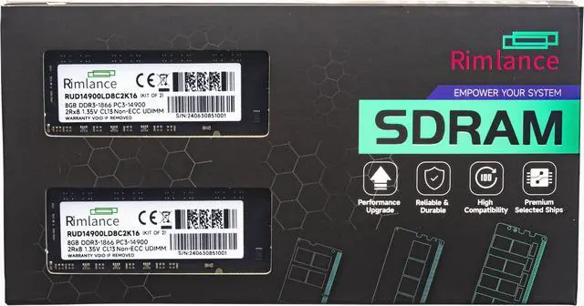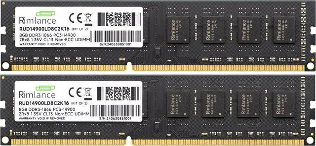Upgrade your desktop PC's performance with the Rimlance 16GB (2X8GB) 1.35V DDR3 1866MHZ PC3-14900 UDIMM 2RX8 Desktop Memory. This high-speed memory kit offers a significant boost in multitasking capabilities, allowing you to run multiple applications simultaneously without lag or slowdowns. Designed for compatibility with DDR3-compatible motherboards, this memory module operates at a speedy 1866MHz frequency, ensuring smooth and efficient data transfer rates. With a total capacity of 16GB (2X8GB), you'll have ample memory resources to handle demanding tasks such as video editing, 3D rendering, and gaming. The 1.35V voltage ensures stable and reliable operation, while the unbuffered DIMM (UDIMM) design allows for easy installation in most desktop systems.