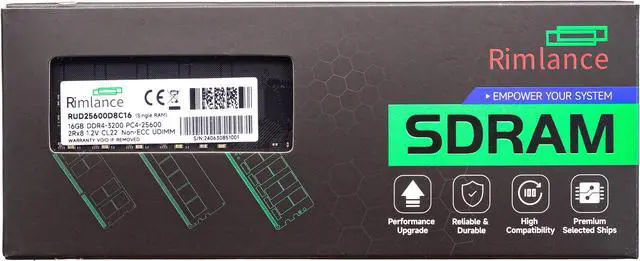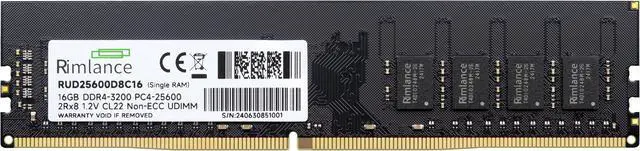 Rimlance's 16GB DDR4 3200MHz desktop memory module offers lightning-fast performance for your computer. With a speed of 3200MHz (PC4-25600) and a voltage of 1.2V, this UDIMM (Unbuffered DIMM) 2RX8 stick ensures smooth multitasking and seamless operation, even with demanding applications. Designed for desktop PCs, this 16GB (1 x 16GB) memory module provides ample capacity for running multiple programs simultaneously, handling large files, and enjoying a lag-free computing experience. Compatible with DDR4 systems, this memory module is an excellent choice for upgrading or building a high-performance desktop computer. Its compact and sleek design allows for easy installation, while its reliable performance ensures long-lasting and efficient operation.