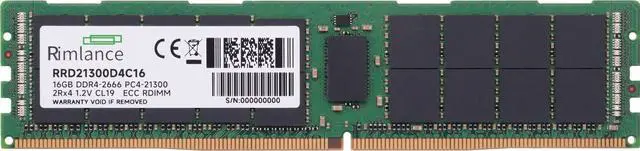 RIMLANCE 16GB(1X16GB) DDR4 2666MHz PC4-21300 2RX4 1.2V 288-PIN ECC Registered RDIMM Server Memory