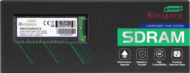 Rimlance's 16GB (1X16GB) 1.2V DDR4 2666MHz PC4-21300 RDIMM 2RX4 Server Memory is designed to provide reliable and high-performance computing for your server or workstation. With a speed of 2666MHz and a voltage of 1.2V, this memory module offers fast data transfer rates and low power consumption, ensuring efficient and energy-saving operation. Constructed with high-quality components and rigorously tested for compatibility and stability, this server memory from Rimlance is an ideal choice for upgrading or building a robust server system. Whether you're running resource-intensive applications, handling large databases, or performing complex calculations, this 16GB memory module will provide the necessary memory capacity and speed to keep your server running smoothly.