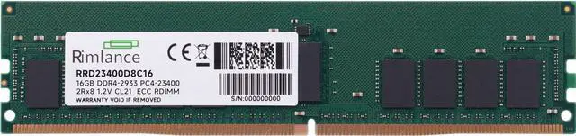 Rimlance's 16GB DDR4 2933MHz RDIMM server memory module is designed to deliver reliable performance and seamless data transfer for your demanding computing needs. Engineered with meticulous precision, this 1.2V 2Rx8 RDIMM (Registered Dual In-line Memory Module) utilizes advanced memory technology to ensure optimal compatibility and stability with your server or workstation. With a staggering 16GB capacity and lightning-fast 2933MHz data rate, this memory module empowers your system to handle even the most intensive applications with ease, enabling smoother multitasking, faster data processing, and enhanced overall system responsiveness. Rigorously tested for quality and durability, this server memory module is built to withstand the rigors of continuous operation, delivering consistent and reliable performance over an extended lifespan.
