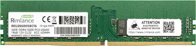 Rimlance's 16GB DDR4 3200MHz ECC UDIMM server memory module is designed to provide reliable and high-performance computing for your server or workstation. With its error-correcting code (ECC) technology, this 1.2V unbuffered DIMM ensures data integrity and system stability, making it ideal for mission-critical applications. Featuring a 1Rx8 configuration and a clock speed of 3200MHz (PC4-25600), this 16GB module offers ample memory capacity and blazing-fast data transfer rates. Constructed with high-quality components and rigorously tested for compatibility and longevity, this memory module is built to deliver consistent performance and durability. Upgrade your server or workstation with Rimlance's 16GB DDR4 ECC UDIMM and experience seamless multitasking, improved system responsiveness, and enhanced overall computing power.