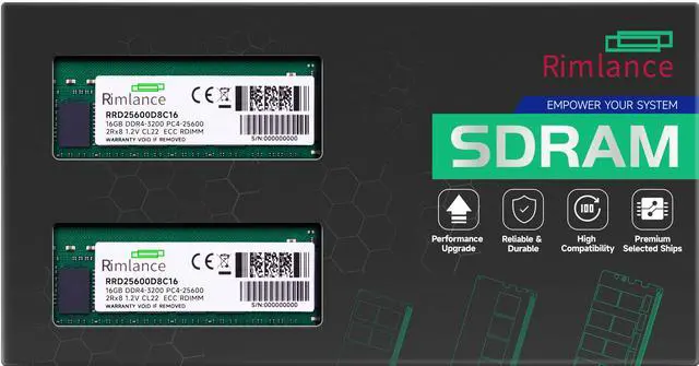 RIMLANCE RAM 32GB(2X16GB) DDR4 3200MHz PC4-25600 2Rx8 1.2V 288-PIN ECC Registered RDIMM Server Memory KIT Compatible with Dell PowerEdge XR11 Rack Server