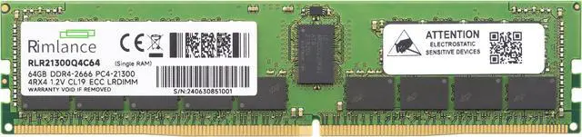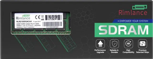 Rimlance's 64GB DDR4 2666MHz PC4-21300 LRDIMM 4RX4 Server Memory is designed to provide reliable and high-performance memory solutions for server systems. With a capacity of 64GB (1X64GB), this Load Reduced Dual Inline Memory Module (LRDIMM) offers a significant boost in memory capacity, enabling efficient handling of demanding applications and workloads. Operating at a speed of 2666MHz and utilizing the DDR4 standard, this memory module delivers fast data transfer rates and low power consumption. Featuring a 4RX4 configuration, it ensures optimal performance and compatibility with server motherboards supporting LRDIMM technology. Rimlance's server memory modules undergo rigorous testing and validation processes to ensure stability, compatibility, and longevity, making them a trusted choice for mission-critical server environments.