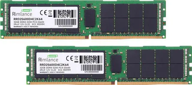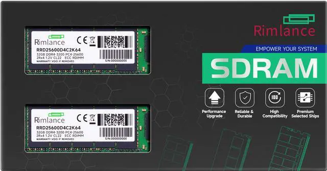 Rimlance 64GB (2X32GB) 1.2V DDR4 3200MHz PC4-25600 RDIMM 2RX4 Server Memory is a high-performance memory solution designed for servers and workstations. This dual-rank registered DIMM (RDIMM) kit offers a total capacity of 64GB, with two 32GB modules. It operates at a blazing-fast speed of 3200MHz, providing exceptional data transfer rates and responsiveness for demanding applications. Engineered with 1.2V DDR4 technology, it delivers reliable and efficient performance while minimizing power consumption. The 2RX4 configuration ensures compatibility with servers and systems that support this memory type. With its advanced design and ample capacity, this memory kit is an ideal choice for upgrading or building high-end servers, rendering workstations, and other memory-intensive computing environments.