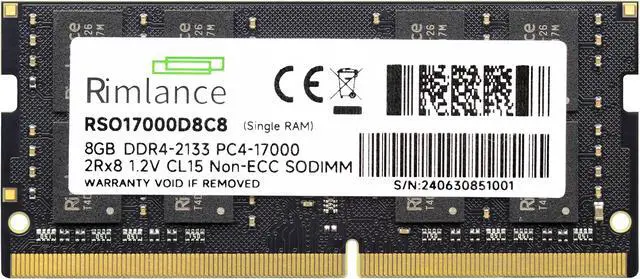 Upgrade your laptop's performance with the Rimlance 8GB (1X8GB) 1.2V DDR4 2133MHz PC4-17000 SODIMM 2RX8 Laptop Memory. This high-speed memory module is designed to provide a significant boost in speed and multitasking capabilities for your laptop or notebook computer. With a data transfer rate of 2133MHz and a low voltage of 1.2V, it offers efficient and reliable operation while minimizing power consumption. The SODIMM form factor ensures compatibility with most modern laptops, making it an easy and convenient upgrade solution. Whether you're running demanding applications, editing videos, or gaming, this 8GB (1X8GB) memory module will help you achieve smoother performance and faster load times.