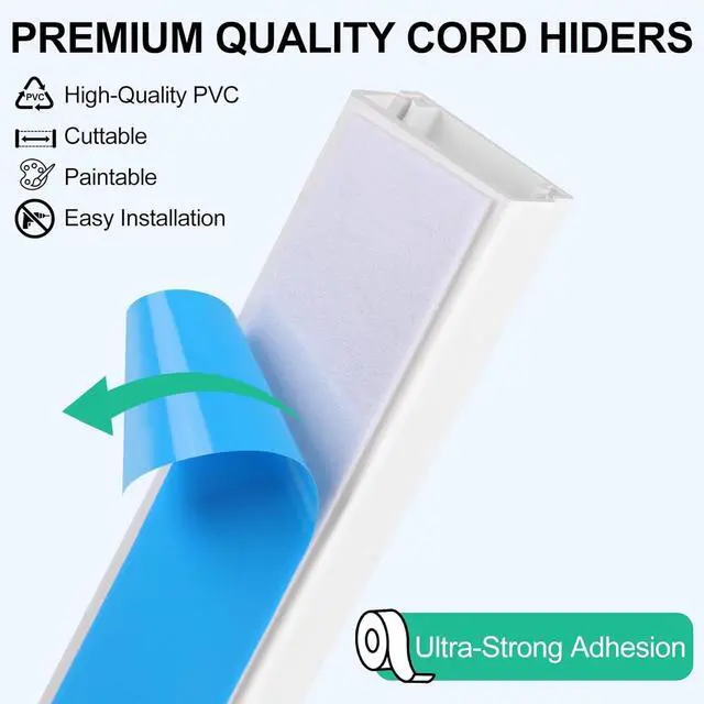 Cuttable & Paintable: Depending on the route of the cord management plan, this wall hider can be cut to the desired length with sharp scissors or a saw. In addition, the wall cord cover can be painted to match the wall color so that it blends in perfectly with its surroundings and adds a touch of sparkle to your home.