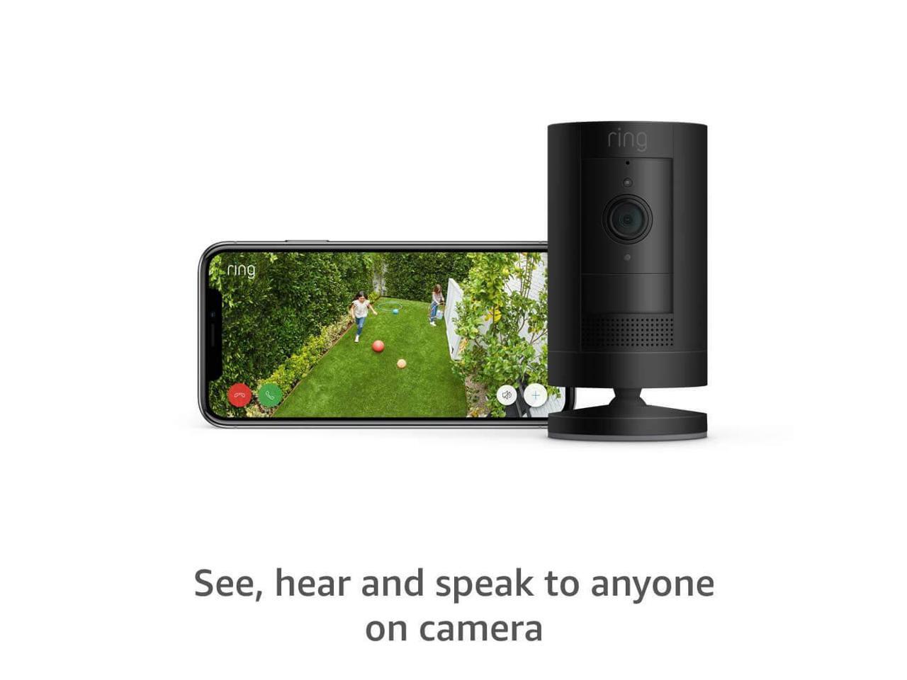 See, hear and speak to people from your phone, tablet or select Echo device with Stick Up Cam Battery, a battery-powered camera that can be mounted indoor or out.