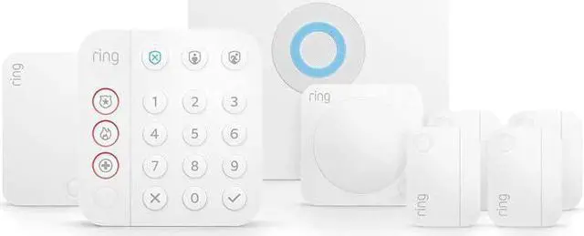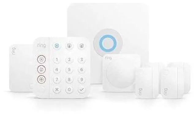 PRODUCT OVERVIEW Help secure your home against break-ins, and more, with Ring Alarm. When armed, Ring Alarm's siren sounds whenever doors or windows open and when motion is detected at home. Level-up your protection with a Ring Protect Pro subscription, sold separately, to get real-time alerts in the Ring App when your Alarm is triggered*, on-demand emergency support with optional Alarm Professional Monitoring**, and other benefits that keep your security ready for anything. KEY FEATURES A great fit for 1-2 bedroom homes, this Alarm Kit includes one Base Station, one Keypad, four Contact Sensors, one Motion Detector, and one Range Extender.
