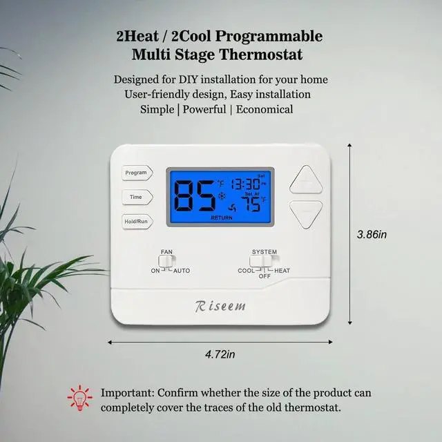 Programmable Thermostat for Home, 5-1-1 Day Programmable, Multi-Stage, 2 Heat/2 Cool, Digital Energy-Saving Thermostat, Advanced Thermostat for Enhanced Home HVAC SystemsBlue Backlight