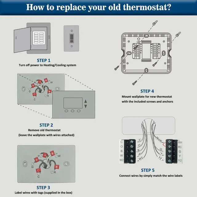 Programmable Thermostat for Home, 5-1-1 Day Programmable,Multi-Stage,2 Heat/2 Cool,Digital Energy-Saving Thermostat,Advanced Thermostat for Enhanced Home HVAC SystemsBlue Backlight