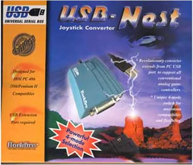USB GamePort Adapter. Use to Connect ANALOG Only JOYSTICKS to the Computer Has 4 Different Analog Joystick Modes. Works with Windows XP to Windows 7 Made by RockFire Supports most conventional analogue game controllers Compatible with most operating systems upto Windows 8 Easy installation and convenient operation. 6 foot extension cable LD15 socket - low density 15 pin Revolutionary converter extends from PC USB port to support all conventional analogue game controllers. Unique 4-mode switch for maximum compatibility and flexibility
