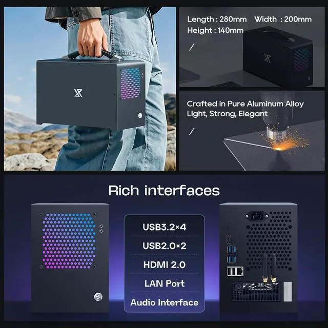 ITX P14 PRO is powered by Intel Core i5 14400F prebuilt gaming pc mini itx desktop powered by the GeForce RTX 4070 12G Blackwell architecture,enables game-changing Al capabilities in the latest games and apps.Multiply performance with DLSS 4,enjoy realistic graphics with ray tracing Processor Intel Core i5-14400F Processor (10 cores, 16 threads, turbo frequency 5.3 GHz) Onda 16G DDR4 Dual Channel SSD Kingston/Philips M.2 1T High-Speed Protocol Solid State Drive GPU GEFORCE RTX 4070 12GB GDDR6 PSU 550W All-aluminum chassis computer tower