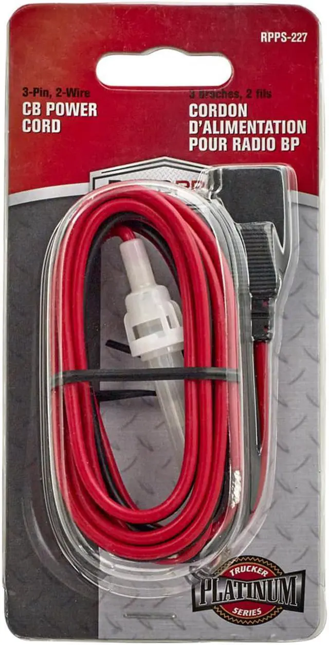 ROADPRO R RPPS-227 3PIN 2WIRE 16GA POWER HARNESS 016-gauge heavy-duty copper wire with in-line fuse holder 3-pin 2-wire fused power cord Heavy-duty strain reliefs Used to replace power cords on most CB radios Used to Replace Power Cords on Most CB Radios