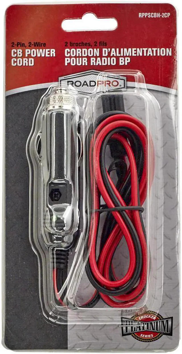 ROADPRO R RPPSCBH-2CP 2-PIN 12-VOLT PLUG FUSED REPLACEMENT 2 WIRE CB POWER CORD16-Gauge Heavy-Duty Copper Wire Heavy-Duty Strain Reliefs Check Proper Polarity (+/-) Before Connecting Used to Replace Power Cords on Most CB Radios Built-In Fused Cigarette Lighter Plug w/Green LED Indicator & Finger Grip Dual Spring Contacts for Maximum Conductivity