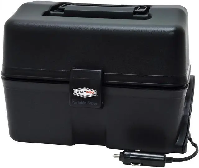 RoadPro 12-Volt Portable StoveBrand NewThis portable stove plugs directly into a 12-Volt power port and is perfect for cooking or warming foods up to 300? F. It has a 15 amp fused 5.5 ' power cord and 12 AMPS/144 Watts current draw. It can be used with 8" x 3.75" x 2.5" aluminum disposable pans for easy clean up (model RPSC-90820).