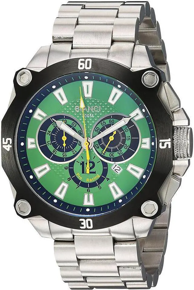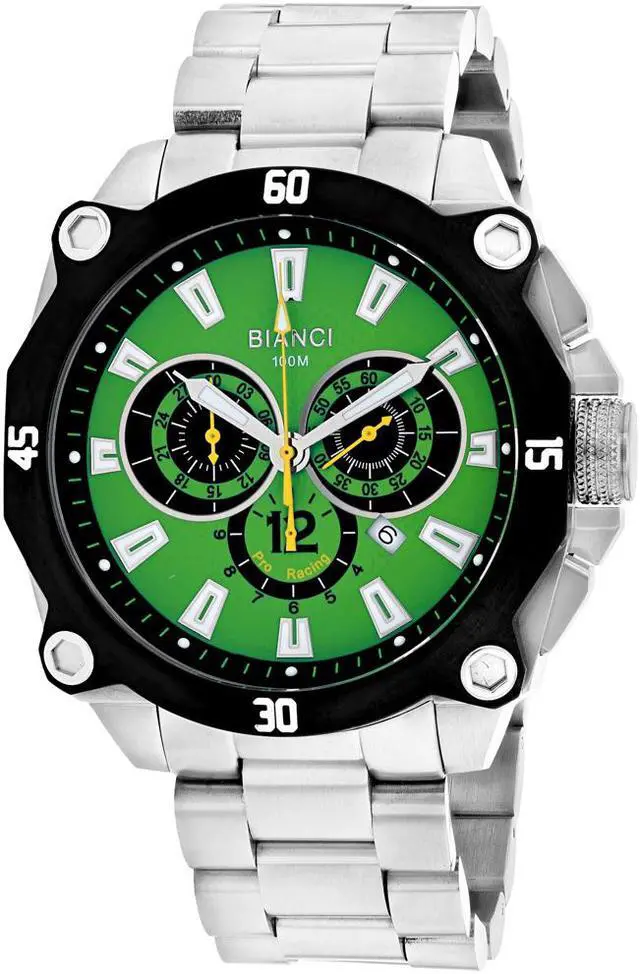 Stainless Steel case, Stainless Steel bracelet, Green dial, Swiss Parts Chronograph Quartz movement, Scratch resistant Sapphire, Water resistant up to 10 ATM - 100 meters - 330 feet