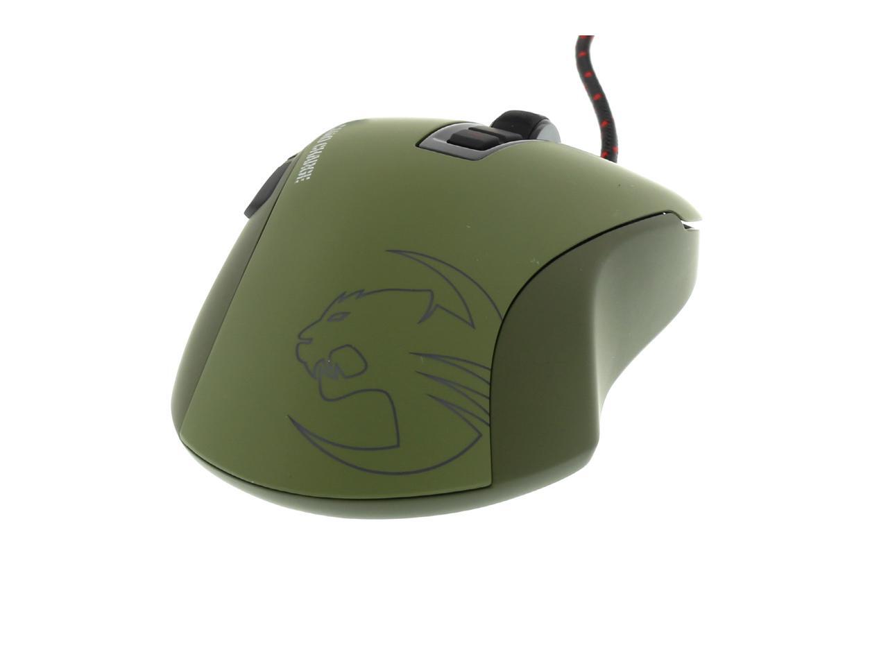 The ROCCAT Kone Pure Military Gaming Mouse doubles the power in the palm of your hand, giving you the gaming edge to obliterate the oppositions. An industry-leading Pro-Optic (R4) 5000dpi optical sensor with dpi adjustable between 100 and 5000 ensures unparalleled aiming ability. Built-in Tracking and Distance Control Unit (TDCU) enables you to adjust the sensor precisely to your mousepad. With its Easy-Shift[+] Button, you can assign two functions to every button, doubling the number of command power in at your disposal. The ROCCAT Click Master switch technology helps ensure that every button press registers with extreme precision. The Kone Pure Military also features customizable multi-color lighting which comes in 16.8 million colors and effects and game profile illumination.
