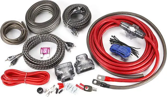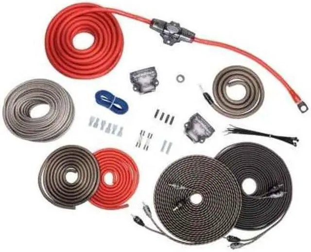 Features: 4 Gauge Complete Dual Amplifier Installation Kit Designed specifically for car audio systems up to 1000 watts Premium power and ground wire provides optimal power transfer Made from 100% oxygen-free copper for a pure uninterrupted transfer of power Includes 2-channel RCA interconnect cables for the audio signal connection from the receiver to the amplifier RCA Interconnects are made with twisted-pair technology for noise reduction Terminals are nickel-plated for excellent signal transfer Maxi Fuse holder offers ideal protection for high powered systems True-to-Gauge cables/wires meet or exceed the industry standard of copper required for the gauge size