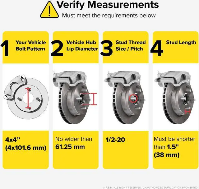 #1. Make sure your bolt pattern is 4x101.6mm or 4x4"