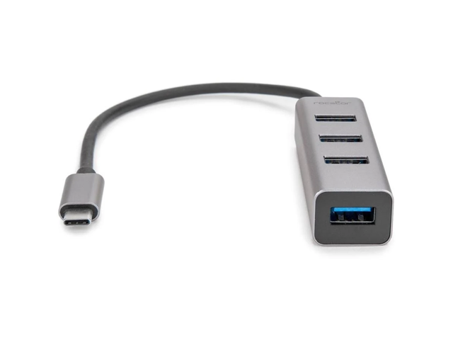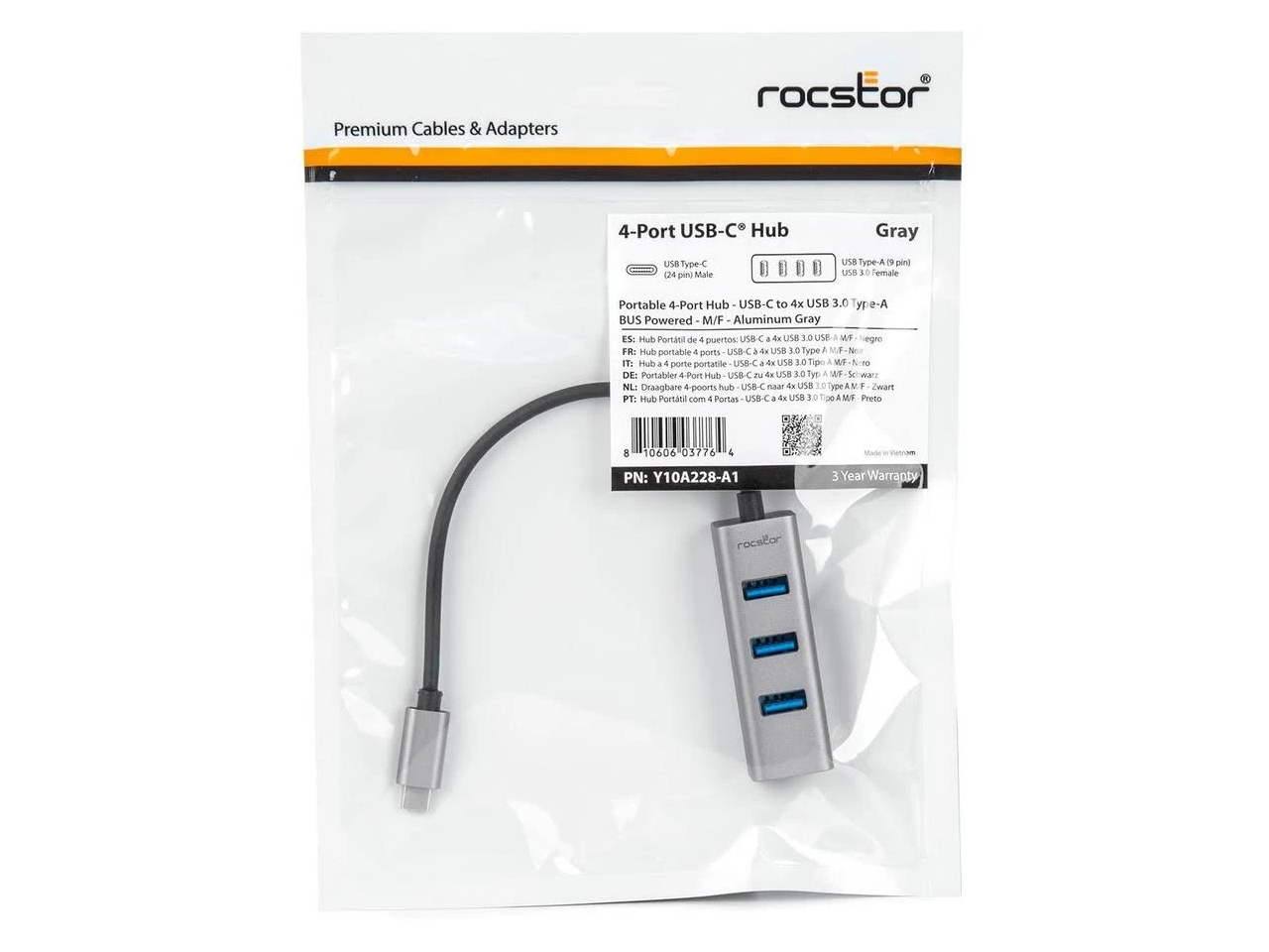 - Rocstor Premium Portable 4-Port Aluminum USB-C Hub allows you to change your USB Type-C Port into 4 USB 3.0 Type-A Ports without the need for an external power supply because it is Bus Powered (transfer rates up to 5Gbps).