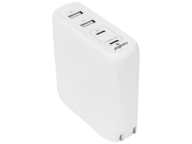 | Features | Ports: 2x USB-C, 2x USB Type-A Compatible Devices: MacBook Air 13", MacBook Pro 13" with 61W, MacBook Pro 14"(67W), MacBook Pro 15.6" (87W), MacBook Pro 16" (96W) Power requirement Compatible Devices: Chromebook, HP, Dell, Lenovo computers Compatible Mobile Devices: iPhone, iPad & Samsung Galaxy phone & tablet For use with 100-240V AC of input voltage Output: 100W Intelligent USB-C Output: 15V/3A, 20V/3.25A, 20V/5A USB Type-A Output: 5V/3.4A Technology: GaN (Gallium Nitride) Charging Certifications: UL, FCC/CE Simultaneously charge multiple devices Four USB connectors for outputs: USB-C (C1 & C2) ports provide 5V/3A,9V/2A, USB-C C1 port provides 5~15V/3A,20V/3.25A,20V/5A output. USB Type-A (A3 & A4) ports provides 5V/3.4A in total, single port provides 5V/2.4A (max). Compliant with PD3.0 equipped with intelligent IC and automatically identifies the handheld devices Accurate limited current output and over current protection. Overload protection and over voltage protection. Short circuit protection. Over temperature protection and remove the fault condition auto-recovery. Compliant with UL, CE, FCC, VI standards. Select precision electrical components, fire line version, and imported fire plastic. Portable and convenient to use. Specially designed for your Type-C supported devices. |