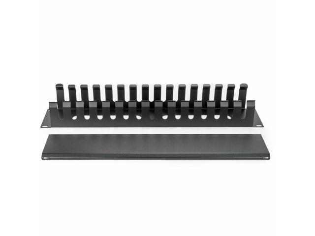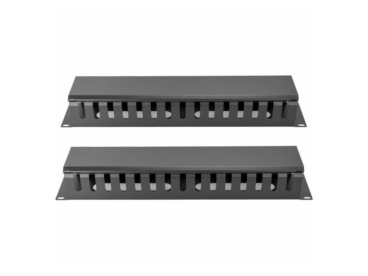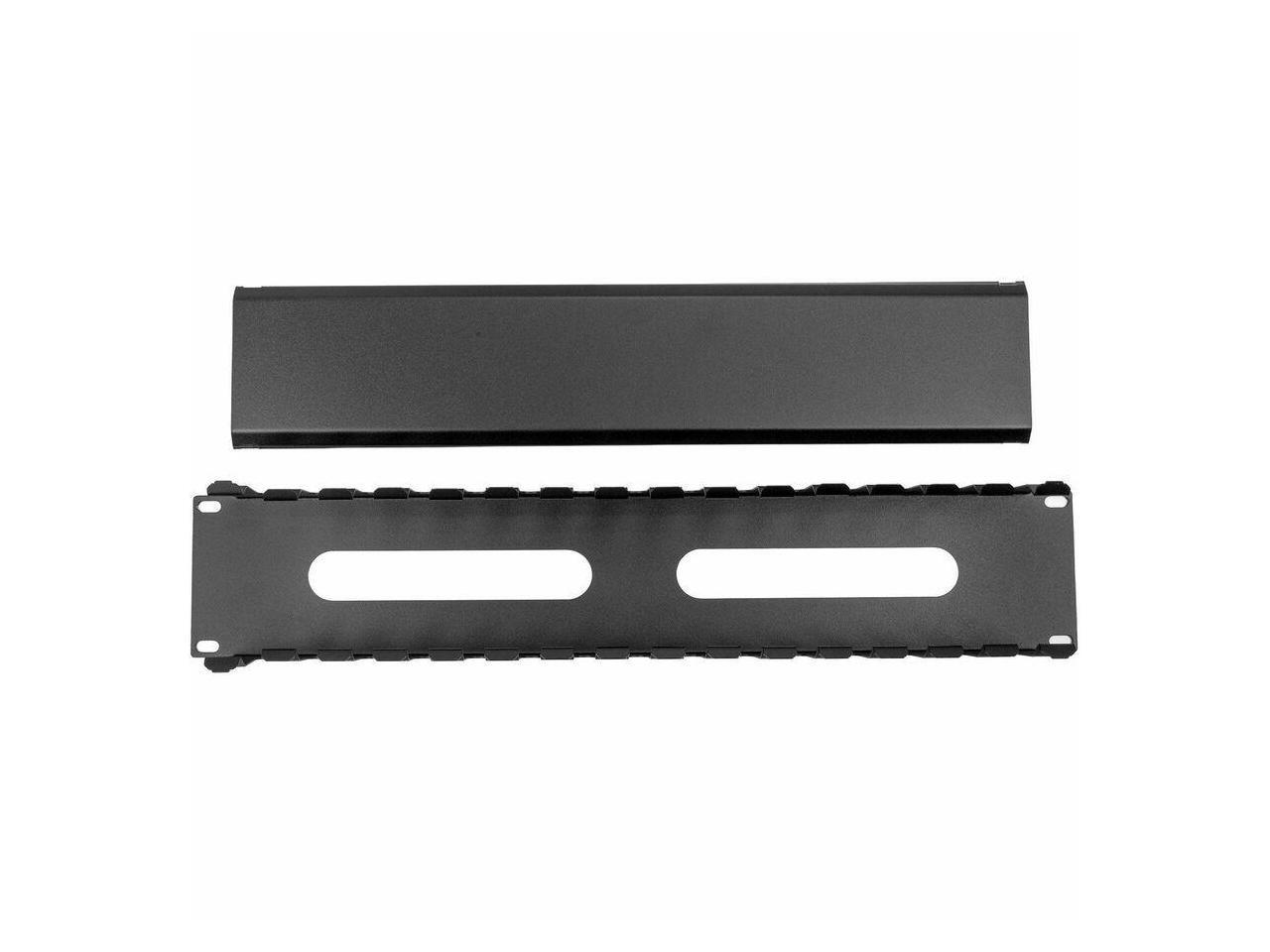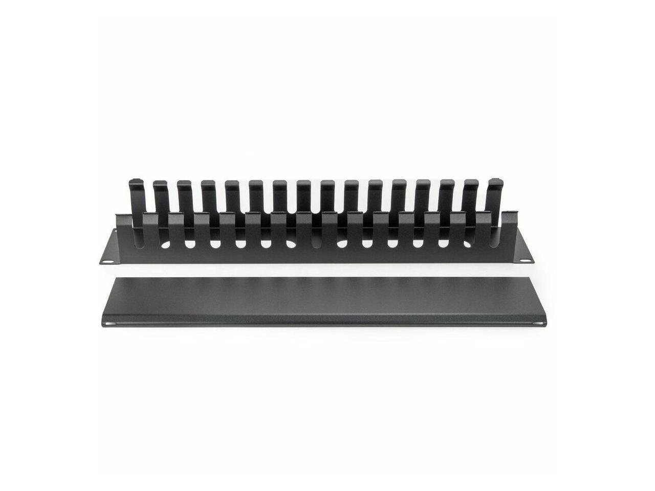 2U Horizontal Finger Duct Rack Cable Management Panel with Cover - Cable Management Panel - Black - 1 - 2U Rack Height - 19" Panel Width - Plastic, Steel