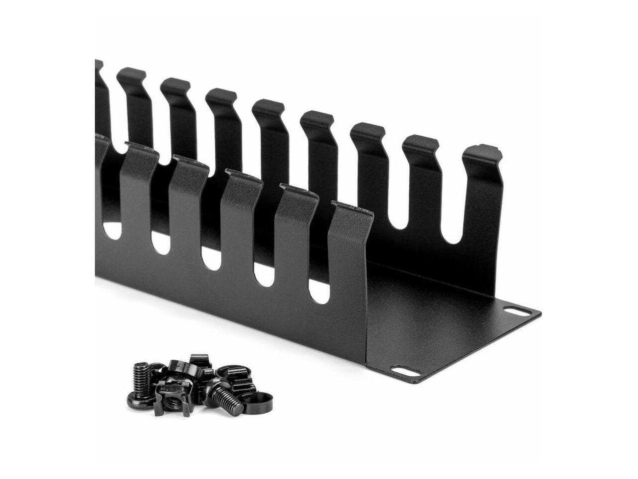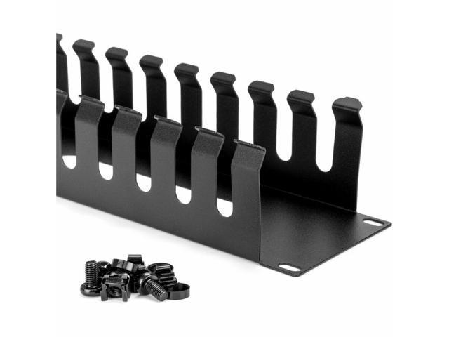 - Features multiple slotted finger ducts on either side and pass-through holes to route cables easily and minimize cable strain