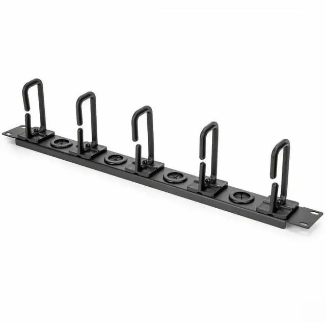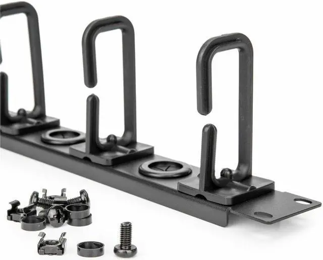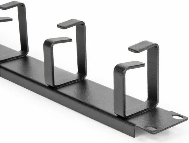Rocstor's Premium 1U Horizontal 19" Cable Management Organizer is a perfect solution to organize and manage your cables in a standard 19-inch 2 or 4-post server rack. Its horizontal design enables it to mount directly onto the rack to minimize cable clutter and provide a tidy look to your server room or data center. It has a depth of 3.85 -inch and is compliant to EIA/ECA-310-E standards. Features D-rings and Pass-through holesThis 1U cable organizer features a set of D-rings and pass-through holes providing various options for routing and organizing cables. D-rings allow easy and secure routing of cables in vertical or horizontal direction to keep the rack organized and facilitate easy equipment maintenance with quick accessibility.