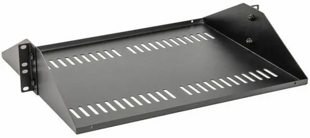 The Rocstor 2U 20 2-Post Network Cantilever Deep Center Rack Shelf is designed to add a high-capacity mid-mount fixed shelf to almost any standard 2-post server rack. With a depth of 20 inches, this cantilever tray provides ample space for AV and data equipment, supporting up to 44lbs (20 kg). Its universal fit EIA 30 compliant data and AV racks, along with the included mounting hardware, makes installation straightforward and hassle-free. This durable shelf is constructed from SPCC commercial-grade cold-rolled steel, ensuring long-lasting reliability and strength. Ideal for storing non-rackmount equipment, tools, peripherals, or accessories, the center-mount design of this shelf allows equipment to sit forward of the rack posts, facilitating easier installation and cable management. Whether used in professional server rooms, data centers, or home office setups, the 2U rack shelf can fit most standard 19 2-post racks. Its adjustable mounting brackets accommodate various post depths, making it a versatile and essential addition to any rack storage solution. Backed by Rocstor lifetime warranty and free technical support.