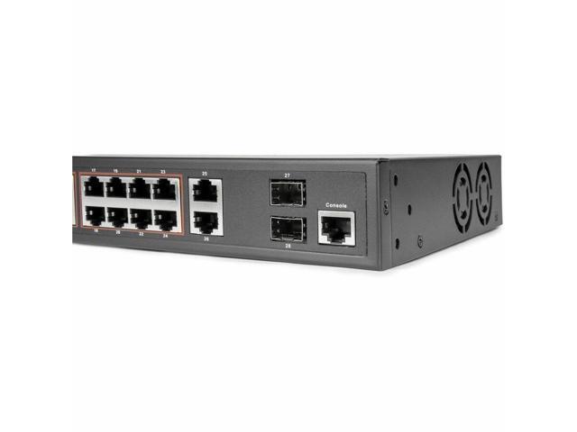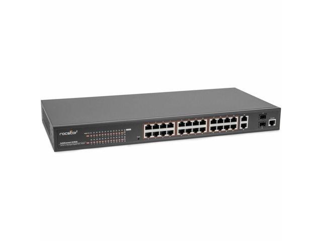 Rocstor SolidConnect SCM28 24-Port PoE+ Gigabit L2 Managed Ethernet Switch - 360W Power Budget - 30W Per Port - 2 Layer Supported - Desktop/Rackmount, Metal Enclosure - IEEE 802.3af/at Y10S011-B1