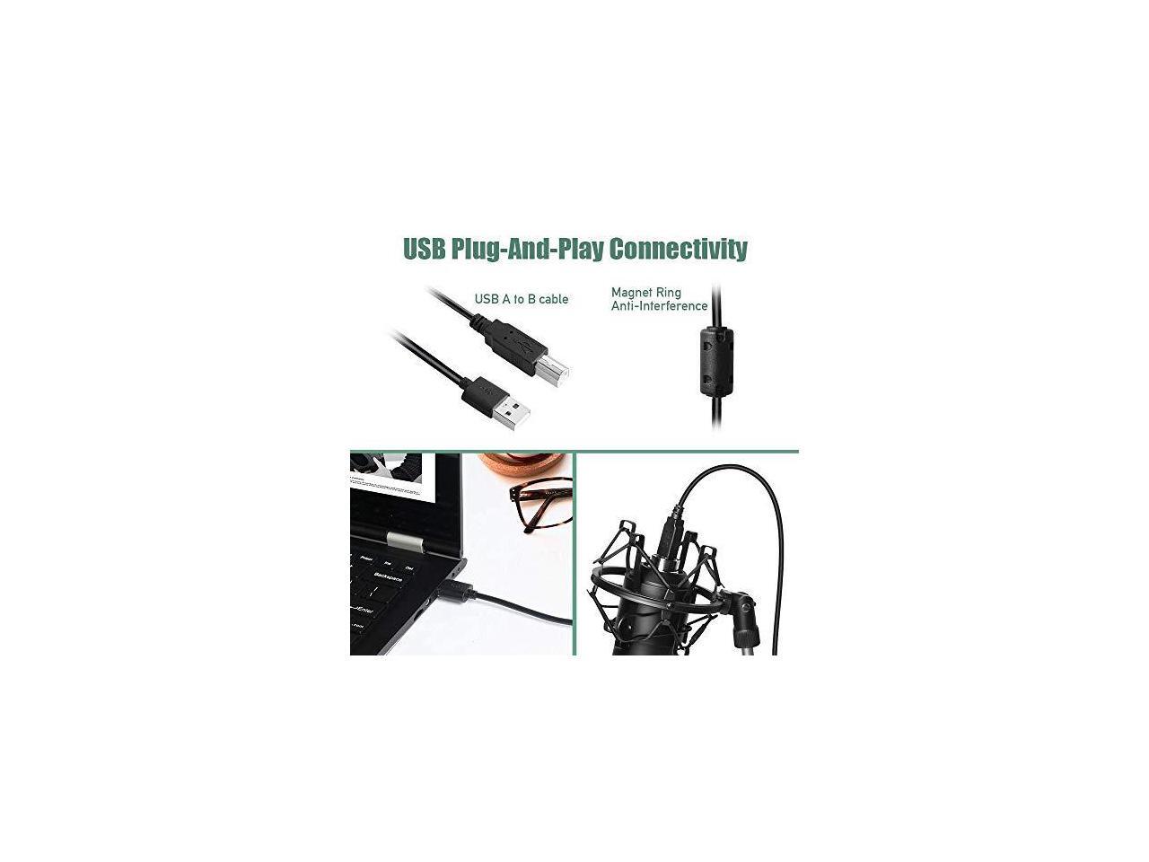 *****USB PLUG & PLAY: High quality desktop recording is made simple! just plug the usb microphone into you computers port, it even works automatically with your mac or pc. No drivers required