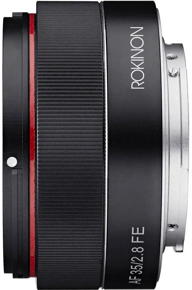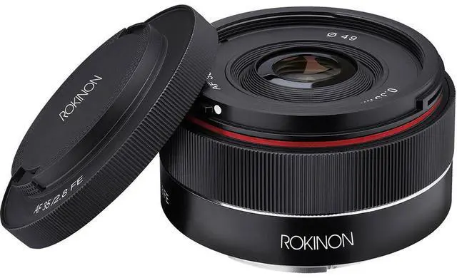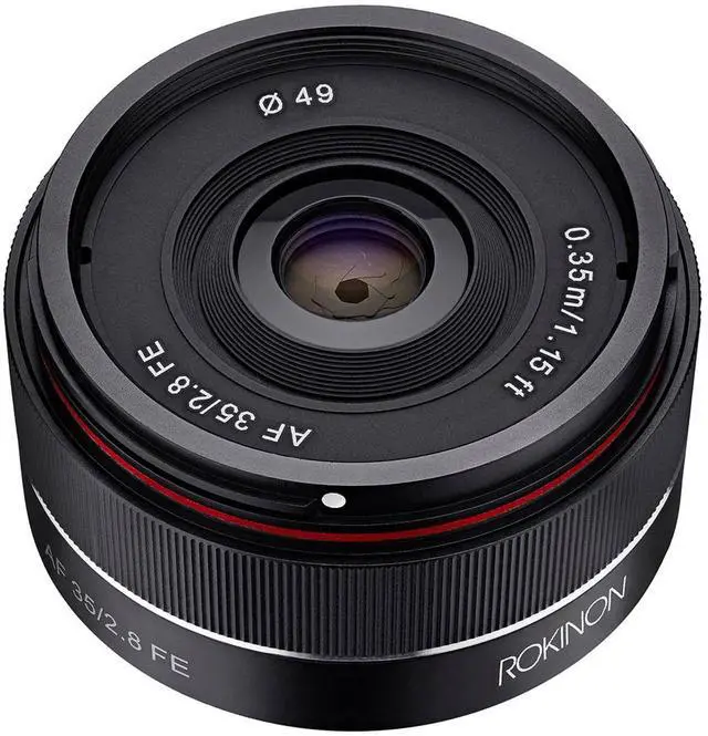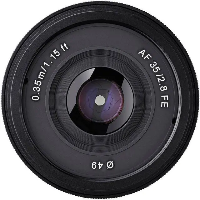 This ultra-compact lens for Sony camera mounts, with a 35mm focal length and f/ 2.8 maximum aperture, keeps things low-profile while giving you real options during a shoot. Rokinon's 7-element aspherical glass optics deliver crisp, clear visuals, and the autofocus element takes the guesswork out of shooting from the hip. The standard lens diameter of 49mm also keeps things simple when you need caps, hoods, or filters, unlike the compact lenses some other brands offer. The lens is full-frame ready, and can focus as close as. 39 meters whileavoiding the crop factor of a longer lens, making this a do-it-all 35mm worth having in your gear bag.
