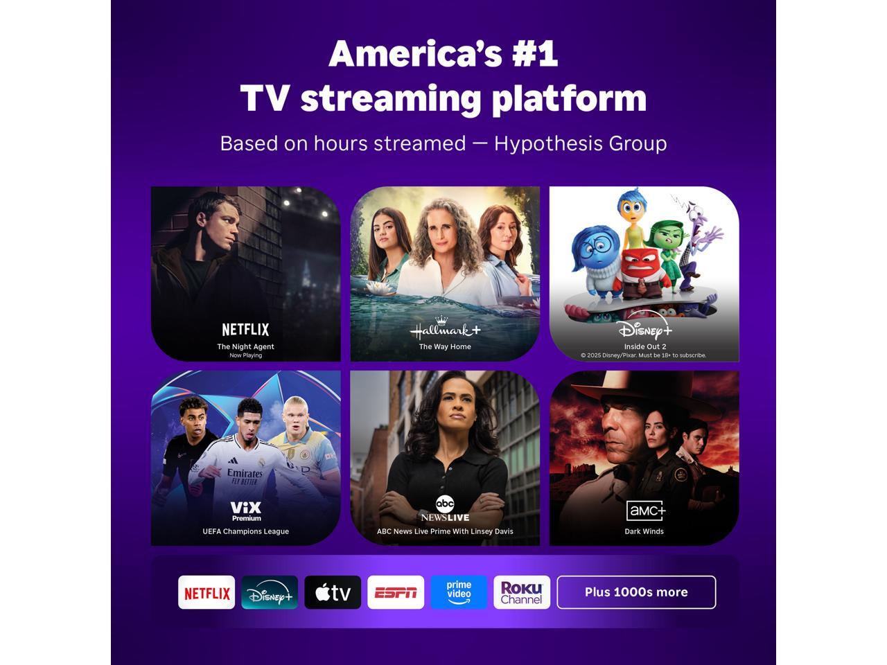 No more juggling remotes: Power up your TV, adjust the volume, and control your Roku device with one remote. Use your voice to quickly search, play entertainment, and more.