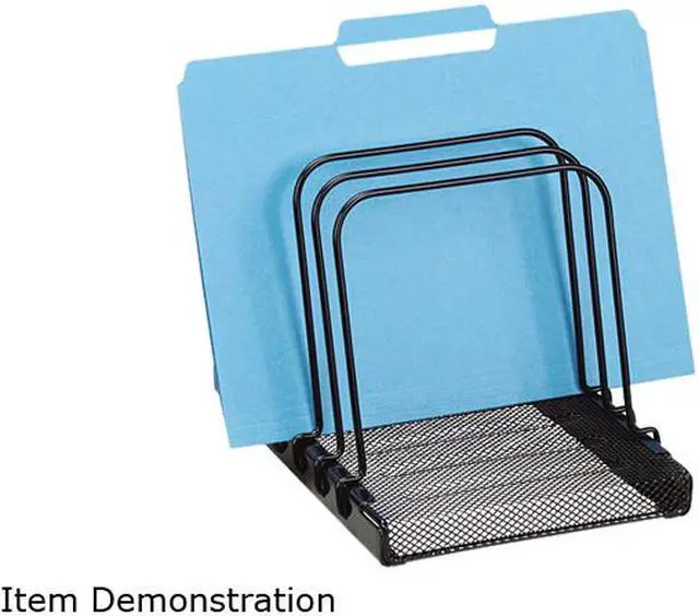 Rolodex Mesh Flip Document Sorter - Desktop - Black - 1 / Each Flip Document Holder offers six vanes to manage your files and documents. Unique flipping design allows you to easily thumb through your files without having to remove them from the sorter. Nonskid feet protect furniture from scratches. Vanes are removable for increased capacity. Mesh steel holder coordinates well other Rolodex mesh desk accessories.