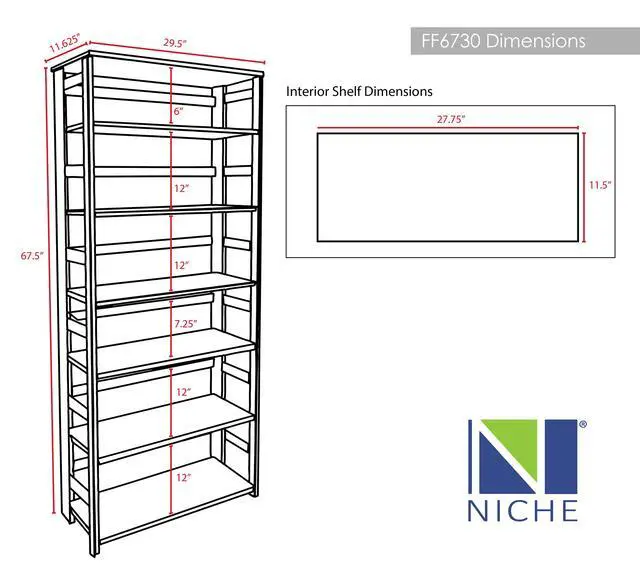 The Flip Flop design makes assembly and storage effortless. The 6 fixed shelves conveniently flip down from their storage position and rest securely on sturdy supports, offering ample organization space. The top shelf attaches securely without tools, ensuring a firm setup in seconds. Once assembled, the bookcase remains stable and sturdy, providing a functional yet elegant storage solution.