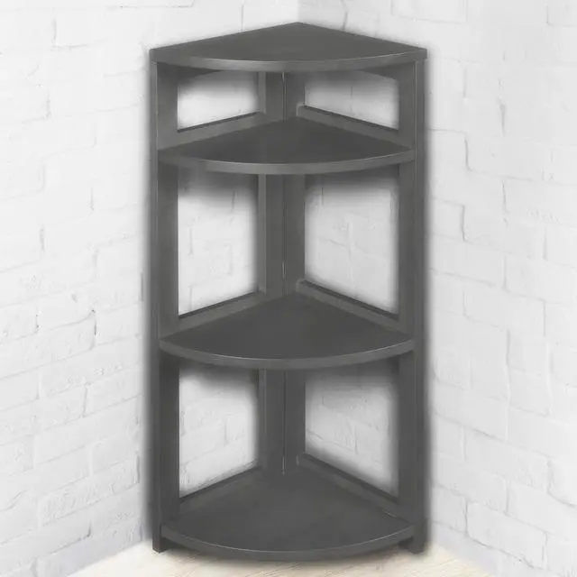 Romig Flip Flop 34 in Folding 3-Shelf Corner Bookcase, Sturdy Solid Wood, Grey