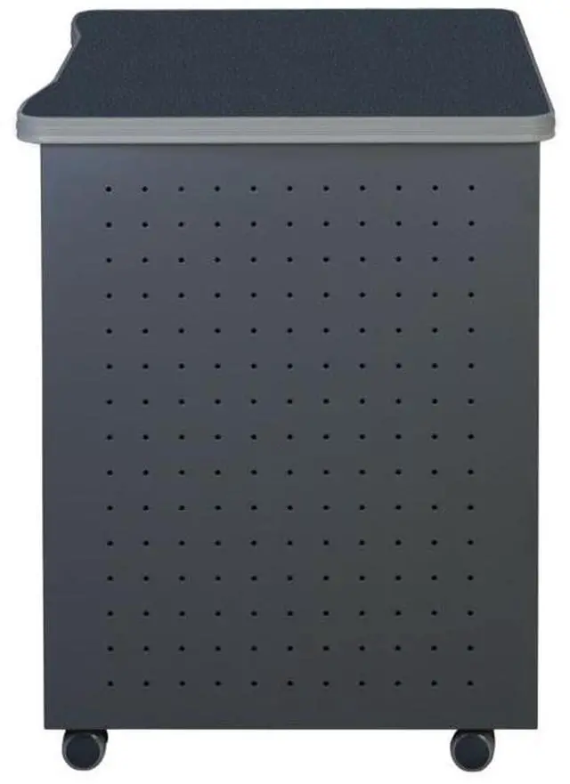 This multipurpose station, ideal for copy machines, printers, or fax equipment, incorporates a protective 9mm edge banding in an elegant gray finish. The surface boasts a durable 1-1/4" high-pressure laminate construction, available in multiple finish options to complement your office décor.